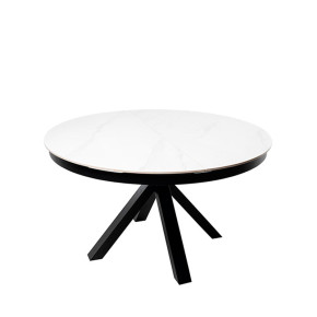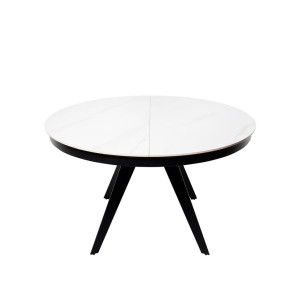 Mesa ZURI redonda con tapa porcelánica de 10 mm y extensión de +50 cm. Disponible en blanco, gris o negro, con pata central metálica negra.890,00 €