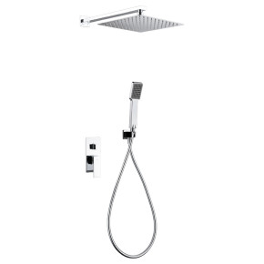Grifo empotrado de ducha Serie PISA de IMEX con rociador extraplano 25x25 cm en acero inox, mango de ducha cuadrado y grifería monomando de 2 vías....